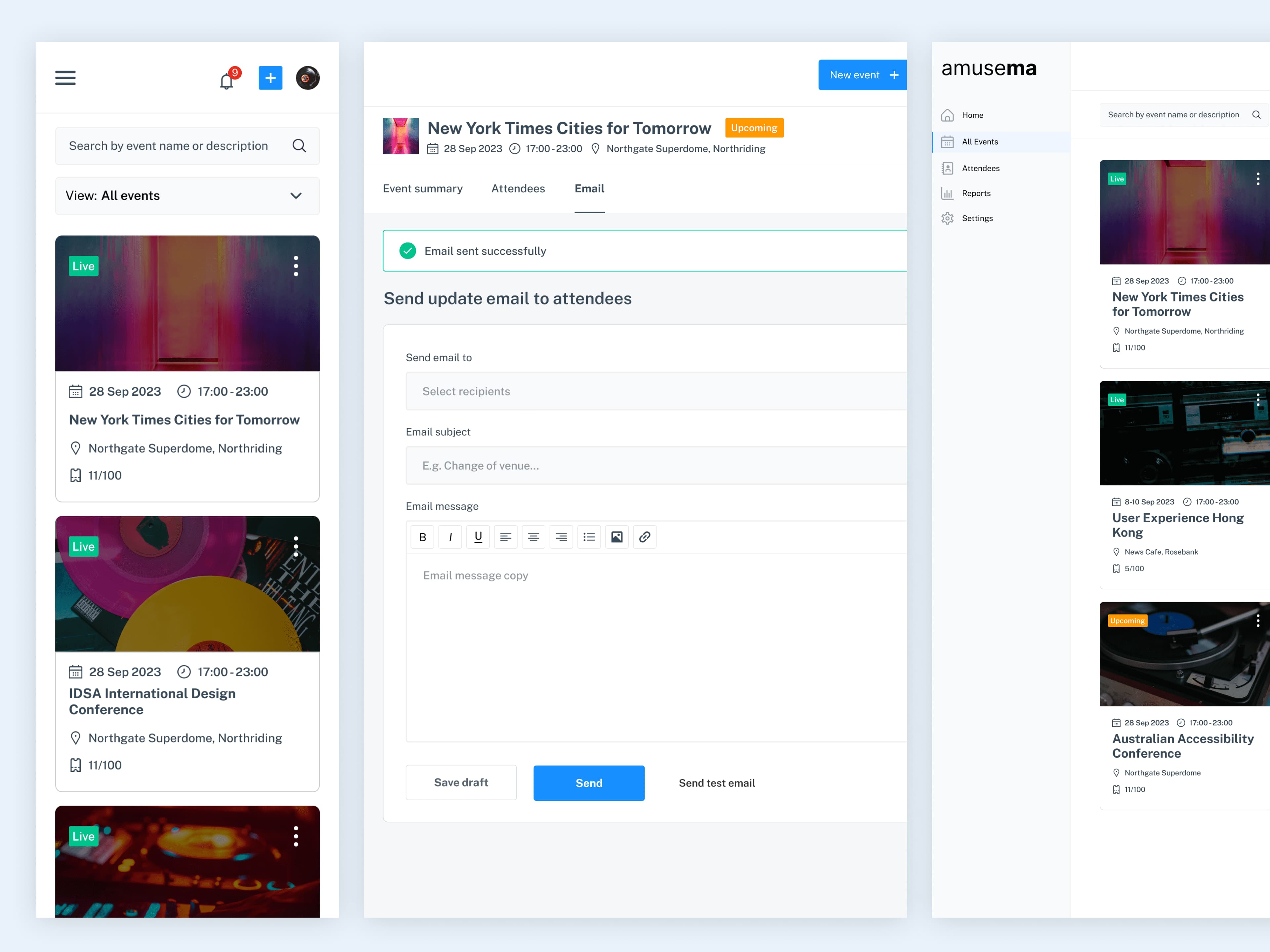 The creation of an event management platform/dashboard that would allow the user to focus solely on ensuring that their event is center stage; provide the user with feedback on registrations and ticket purchases, and enable full control of the event aesthetics, all while still allowing for reach and exposure from social media platforms.